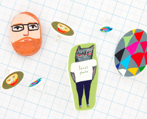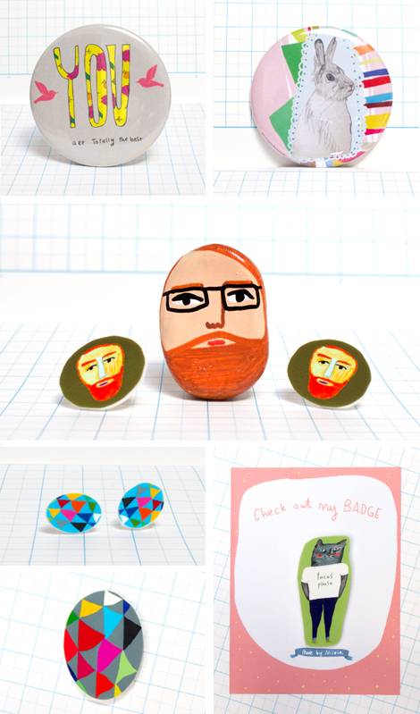 The collection is made up of earrings, brooches, compact mirrors and our favourite item of all her pocket manfriend. The ginger bearded pocket manfriend is called Eric and is a graphic designer, bike enthusiast, vegetarian and loves to comb his beard and collect vintage armchairs. He's the perfect size to carry around with you for moral support and would make a fabulous gift for someone who needs a man by their side.