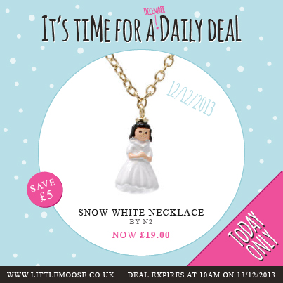 Our Daily Deal today is a real fairytale favourite. Until 10am tomorrow you can pick up this dainty Snow White necklace by N2 Les Nereides for £19 - that means you can save £5 today!