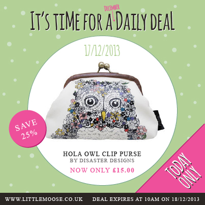 You can grab this floral illustrated owl clip purse from the Hola Collection by Disaster Designs for £15 in our Daily Deal today. If you want to find out more about the Hola collection, why not have a read of our interview with the designer who created it - Lucy from Disaster Designs!