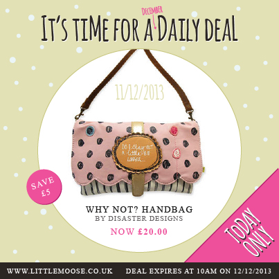 We've got another great deal for you today - you can save £5 on the Why Not? Handbag by Disaster Designs. This quirky little bag features a hand drawn dotted pattern adding an unusual twist to the current fashion trend for geo and patterns. Grab it today, for just £20