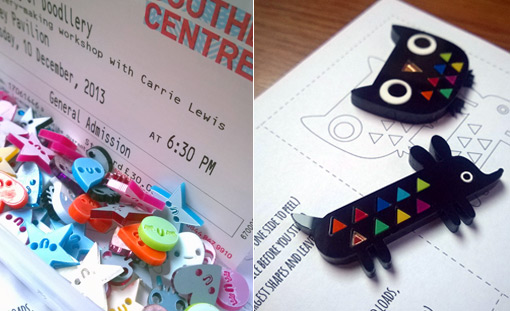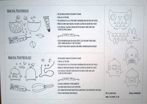 The workshop was all about giving people the chance to sit down and make a piece of acrylic jewellery from scratch, in just the same way that we do here at Little Moose for our quirky Doodllery collection of necklaces, earrings and brooches, as well as find out a little bit about Carrie, her style and her doodle inspiration. It was also a great opportunity for anyone who was interested in making their own jewellery to ask some questions and find out some neat tips and tricks to help them along the way.