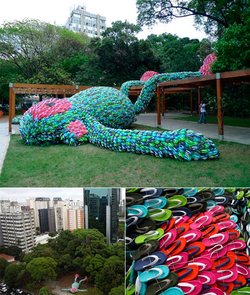 We first heard of the playful urban installations of Florentijn Hofman in 2010 when he constructed a gigantic, technicolour 'Fat Monkey' in Brazil. The incredible, colourful piece as made from 10,000 flip-flops.