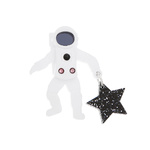 Hand assembled from layers of moonlight white laser cut perspex our astronaut is completed with a trio of subtly coloured crystals, mirrored black visor and oodles of etched detail to give it real depth. Our astronaut is intent on sharing the stars with everyone.
