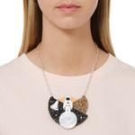 Our intrepid astronaut stands amidst the deepest, darkest - and glitteriest - depths of space, alongside a vibrant orange sun flare, embarking on a journey into the unknown. This striking necklace is carefully pieced together from layers of intricately cut and etched perspex giving it stunning depth. With hand inked detail, as well as glistening crystals, our astronaut necklace will make you feel like the centre of the universe when you launch yourself into the day.