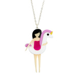 Hand made in our UK studio this quirky unicorn necklace is carefully constructed from three layers of laser cut acrylic with a Swarovski crystal eye. A gloriously whimsical addition to any jewellery collection.