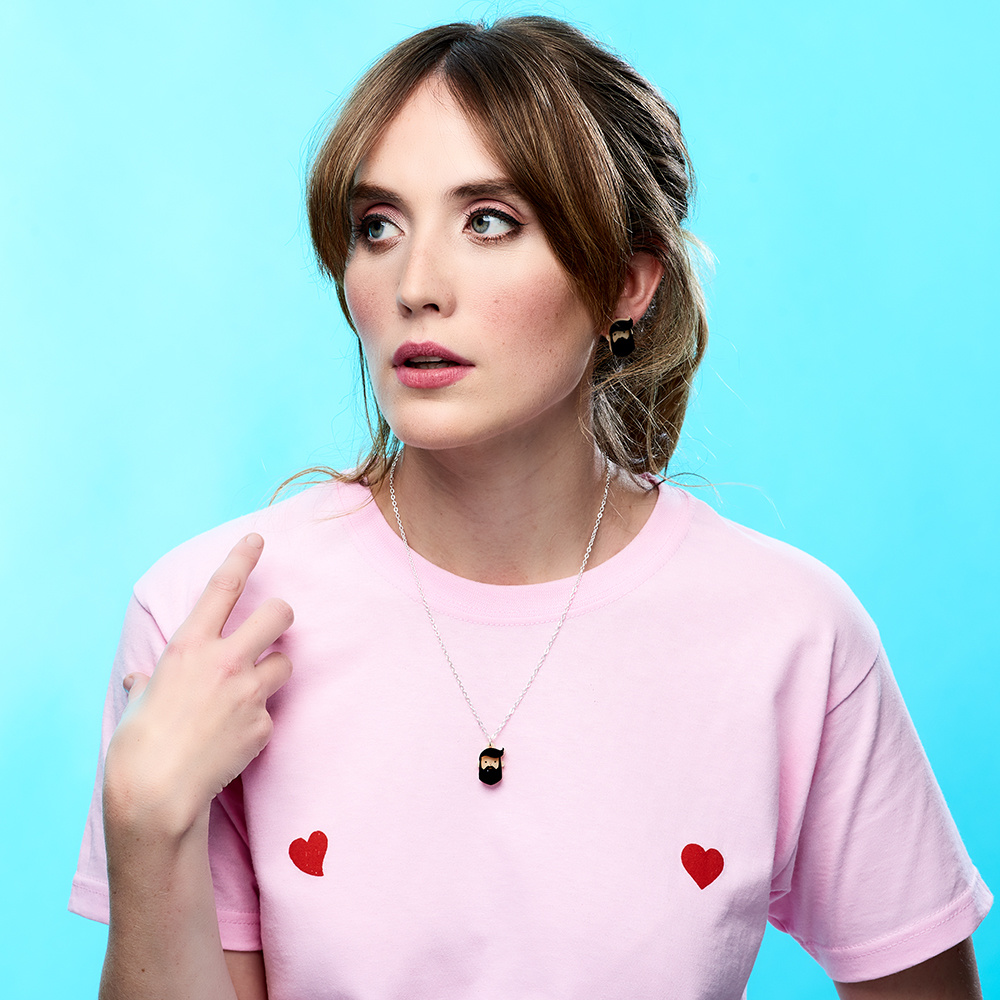 Playful laser cut charm necklace featuring a trendy looking chap, lets call him Marcus, with a magnificent black beard. In our mind, Marcus is a keen handglider who also has a world class collection of pencils. Handmade in the UK.