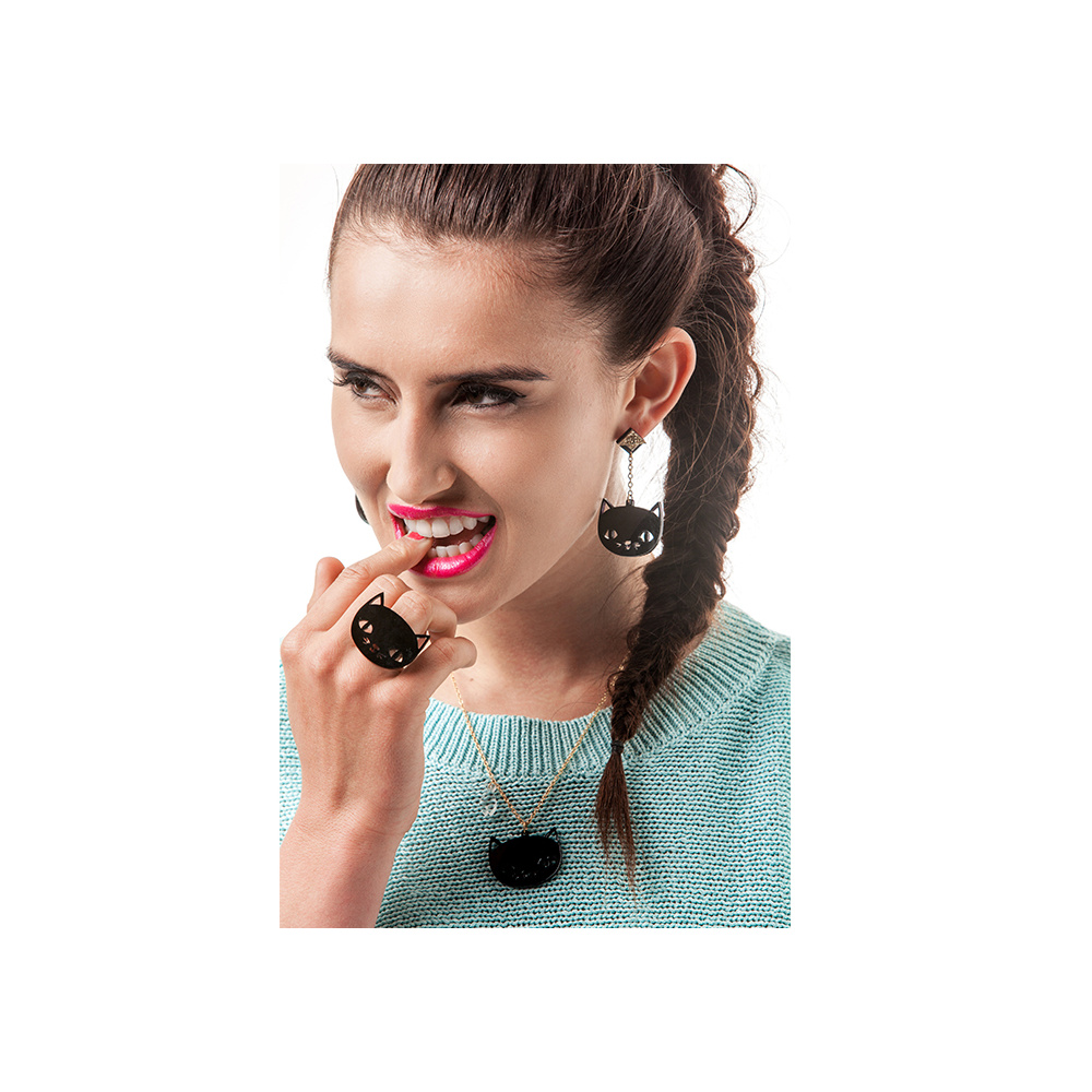 Our easy-to-wear black cat pendant necklace from the Catnap collection is handmade from lasercut perspex/acrylic. The cat charm is wide awake and ready for any treats you can give him! Let's hope that he doesn't see the little transparent fish charm dangling just above him!