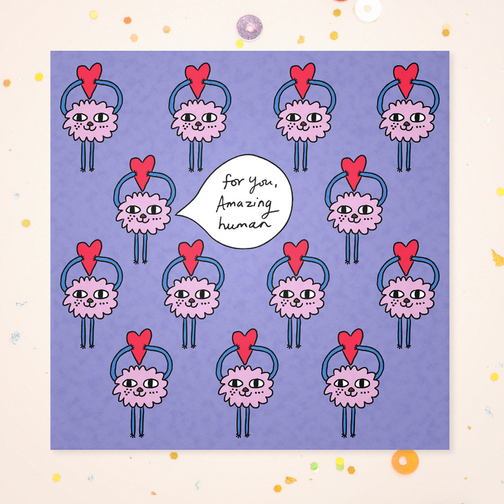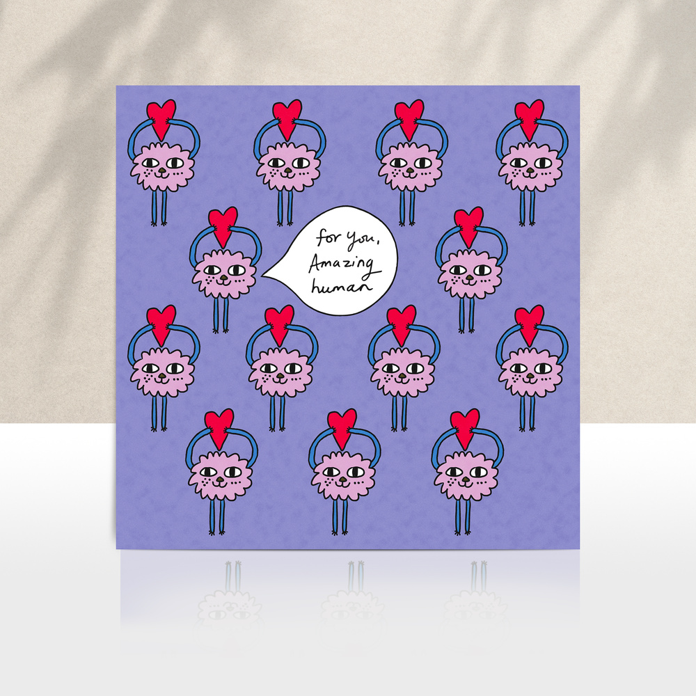 Playful illustrated card by illustrator Carrie Lewis, Doodle Wizard, to give to an amazing human you know. Printed on to high quality matte card and blank inside so you can write your own message.