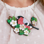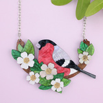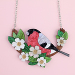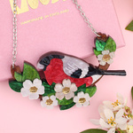 The shy bullfinch is one of our favourite, if least seldom seen birds to grace us with its presence. An absolute treat that we couldn't help but turn into a stunning piece of wearable art jewellery.