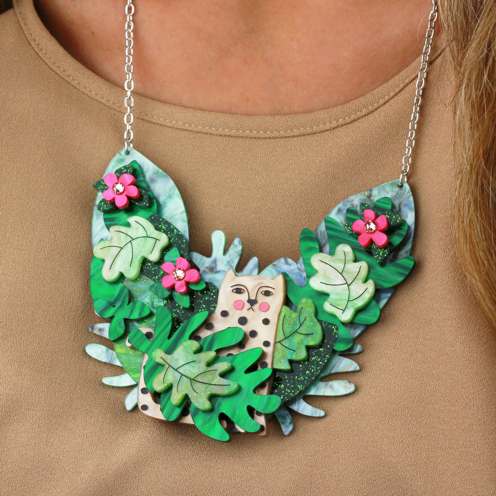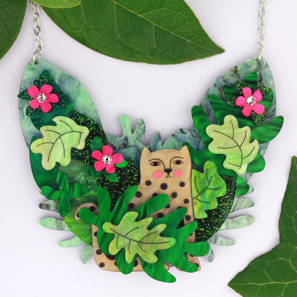 A necklace as intricate and artistic as they come. Our leopard necklace is based entirely on the doodled style of Little Moose founder Carrie and has been lovingly and painstakingly recreated in a selection of the most mesmerising glitter and marble acrylics available. Each of these fabulous statement necklaces is hand inked and features sparkling crystals. A wearable piece of art that we are immensely proud of.