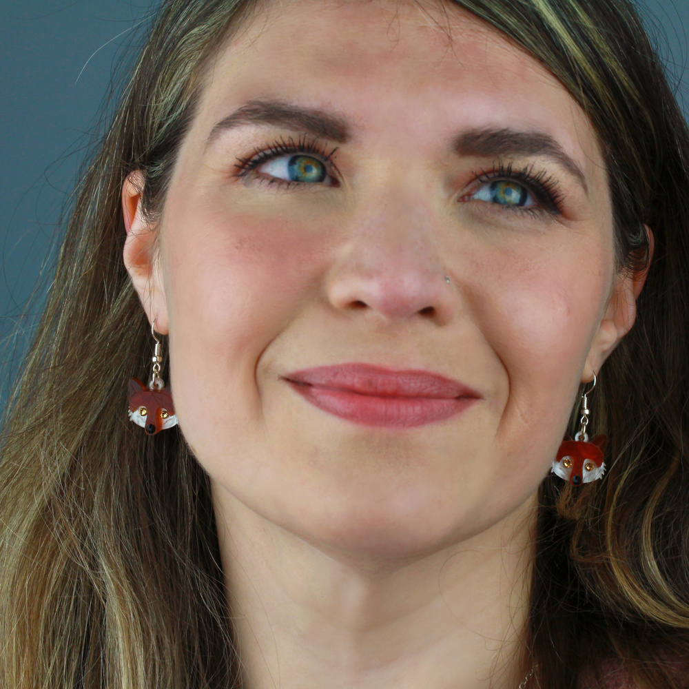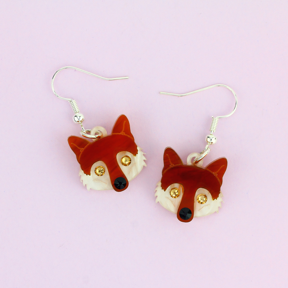 Feeling foxy? Well, you most certainly could be, with our fox charm earrings. These little beauties are handmade in our Sussex studio from layers of tortoiseshell and warm pearl acrylic. Each fox has piercing golden eyes and a black crystal nose.