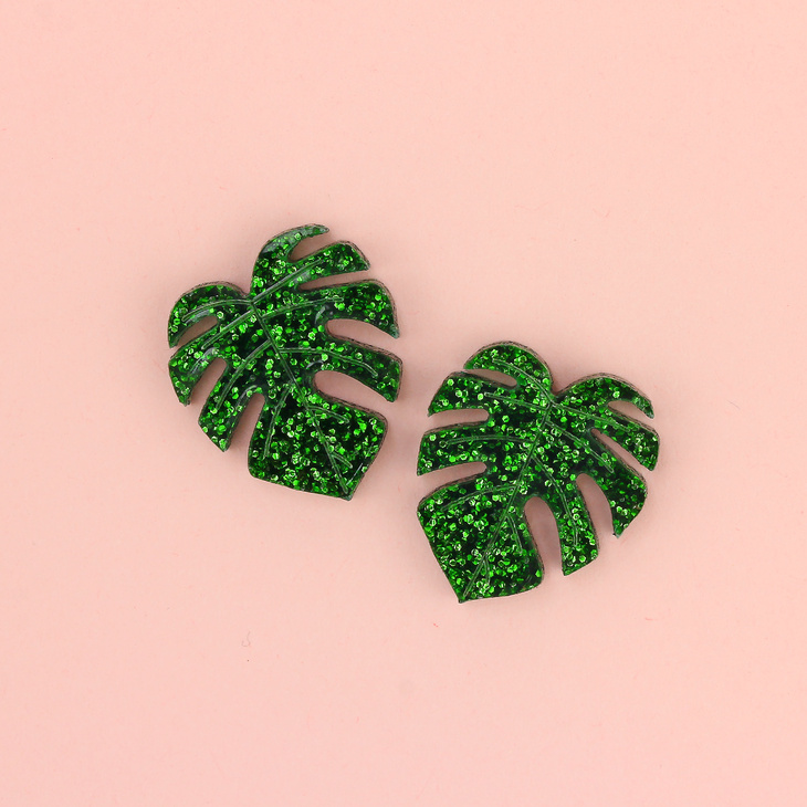 Add some glam to any look with our glittering green monstera leaf stud earrings.
