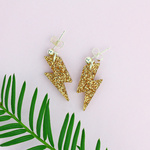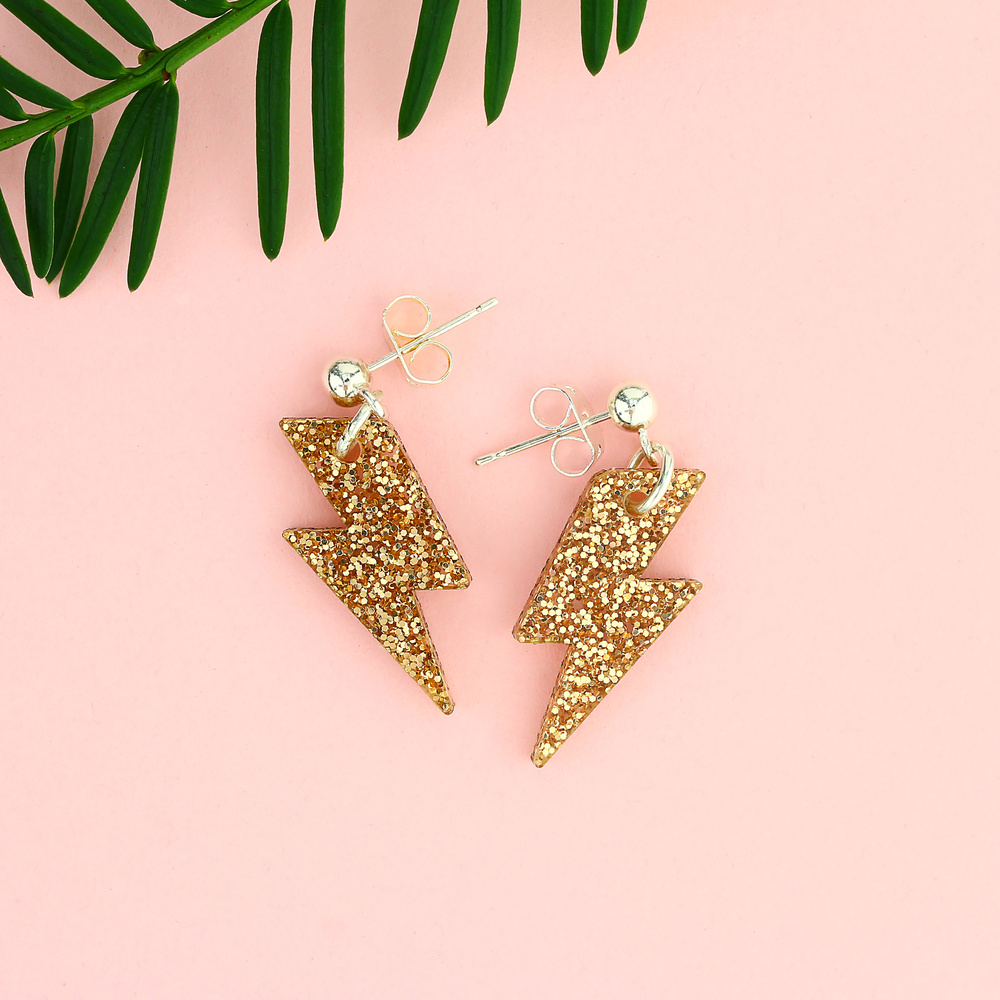 Shooting lightning bolts from your hands might be impressive, but it isn't very practical in day to day life. Glitter gold lightning shooting from your ear lobes though? that's a big win as far as we're concerned. These simple studs hang beneath silver plated studs, so move gently.