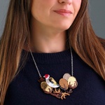This necklace captures one of our favourite garden sights - a glorious goldfinch perching amongst the autumn teasel.