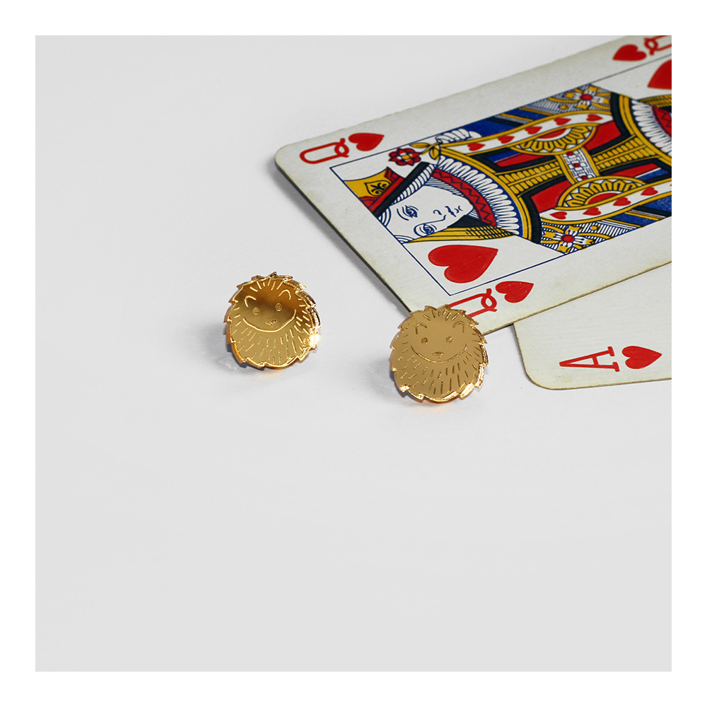 These cute hedgehog earrings are a part of our Alice in Wonderland collection and make a quirky tribute to Alice. They are made from mirrored gold acrylic with etched detail.