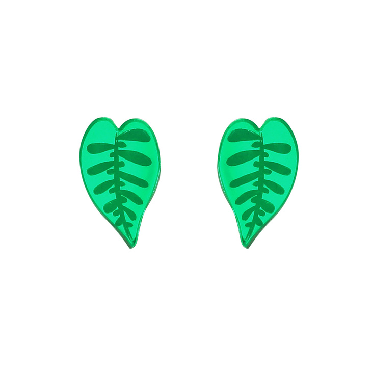 Lovely mirrored green leaf studs with a zebra stripe etched pattern.