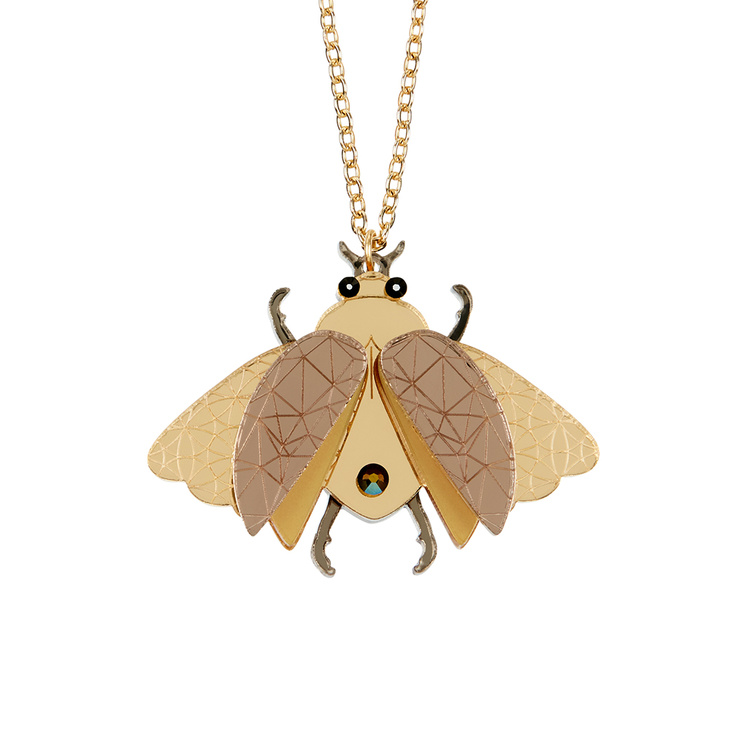 Created from layers of intricately etched gold and bronze acrylic, our insect pendant necklace is the perfect accompaniment to any outfit. Elegant crystals add the final touch to your new favourite necklace.