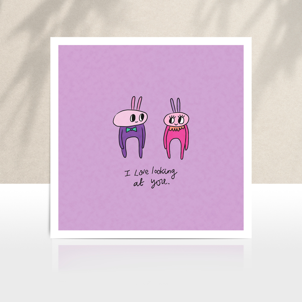 Sweet illustrated card by illustrator Carrie Lewis, Doodle Wizard. Perfect for someone you want to cheer up or make feel loved. Printed on to high quality matte card and blank inside so you can write your own message.