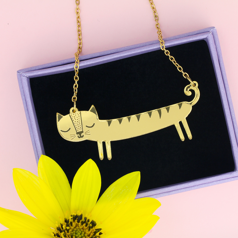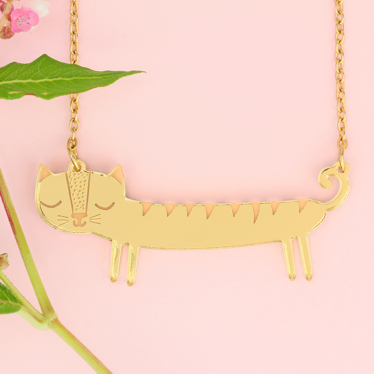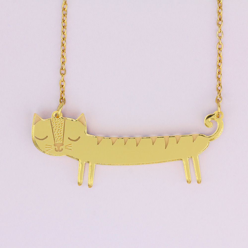 Our mini gold sausage cat necklace is a purrrfect way to show the world that you're a feline fanatic. This charming little necklace is easy to wear, and brimming with personality. Featuring adorable etched details.