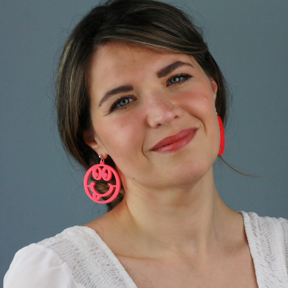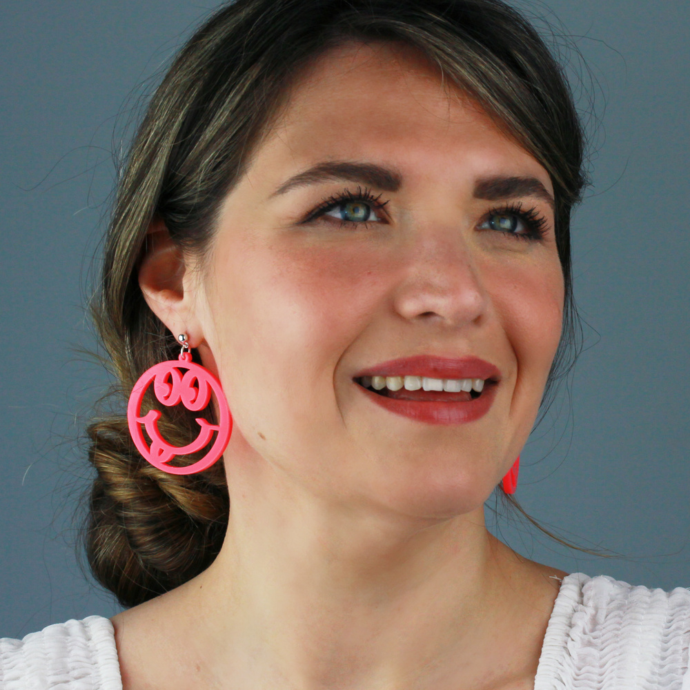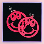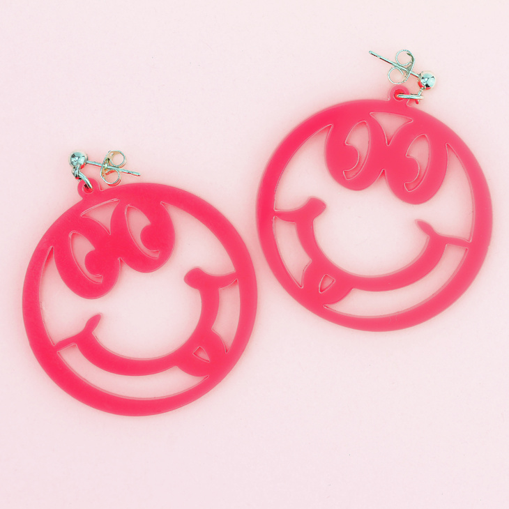 Surround yourself with smiles with our mega neon pink statement smiling face outline earrings. Handmade from a bright and bold neone pink acrylic.
