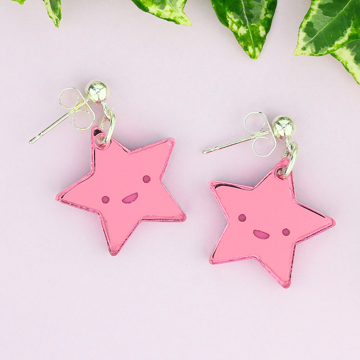 When you shine like a star, you just can't help smiling. Our playful mirrored pink star studs are a perfect little accessory to brighten up your day.