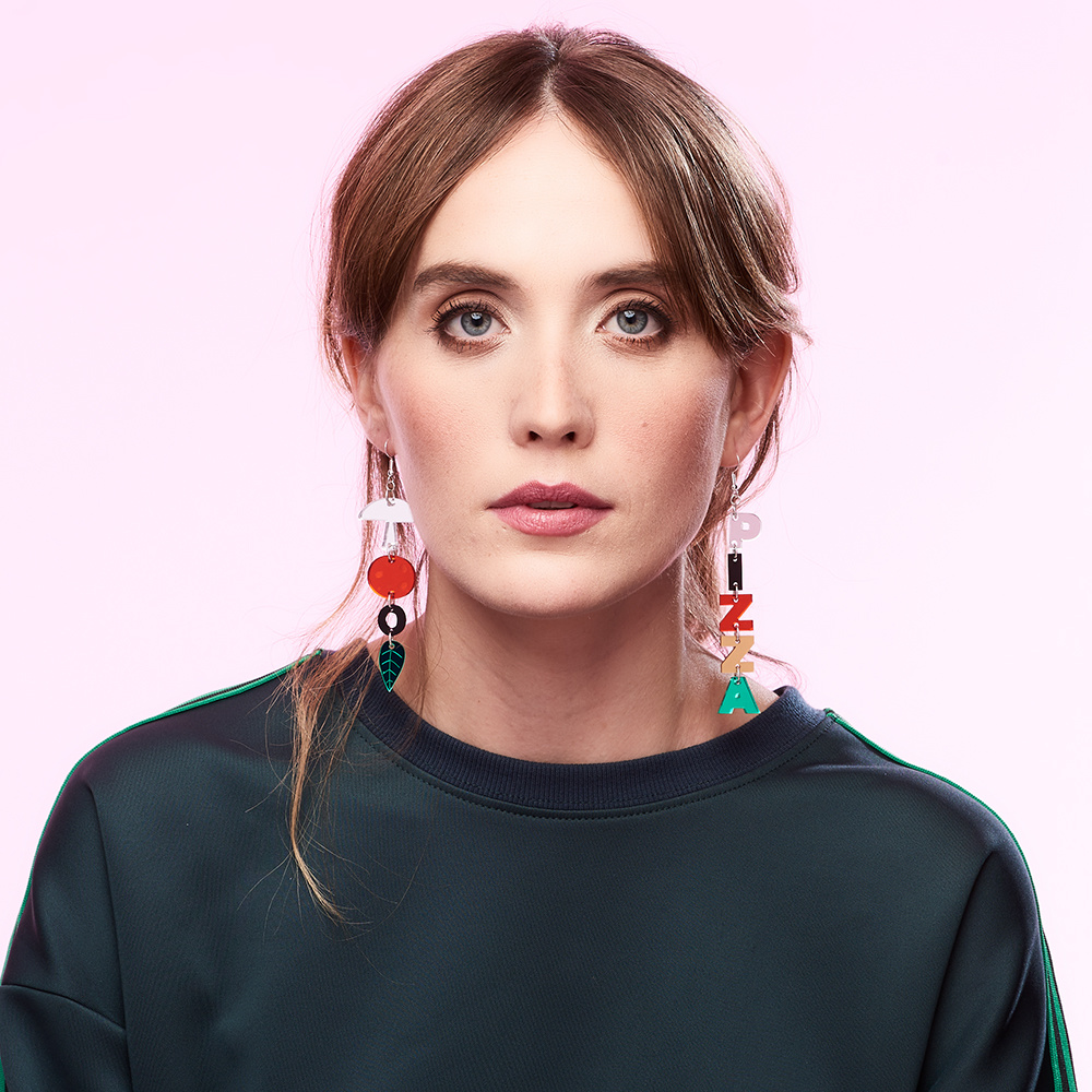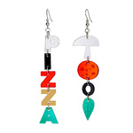 This mixed set of earrings features one colourful earring spelling out P-I-Z-Z-A with the other a dangling collection of popular pizza ingredients in a multitude of mirrored colours. Grab a slice of pizza perfection.