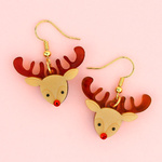 Face the day powered by reindeer with these playful Rudolph earrings. Each reindeer is handmade from pieces of lovely tortoiseshell and caramael coloured acrylic, before being hand finished with inked eyes and a glistening red crystal nose.