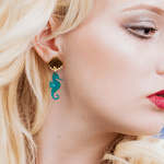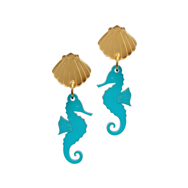 These two little seahorses are taking refuge beneath a pretty gold etched shell. The seahorses are made from a pretty frosted green perspex which looks just like sea glass.