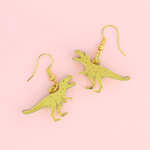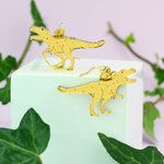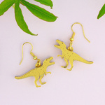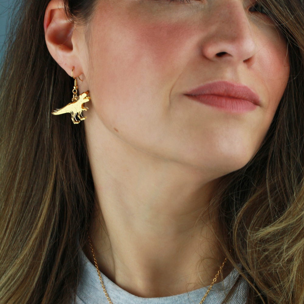 Our T-Rex earrings are the apex predators of your jewellery collection. Handmade from two layers of mirrored gold acrylic, with etched detail, these playful T-Rex earrings are handmade in the UK and use a gold plated earring hook. Pretty roarsome.