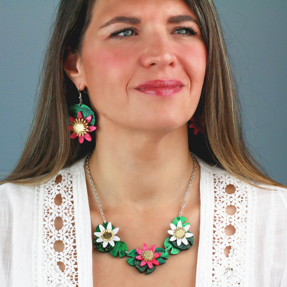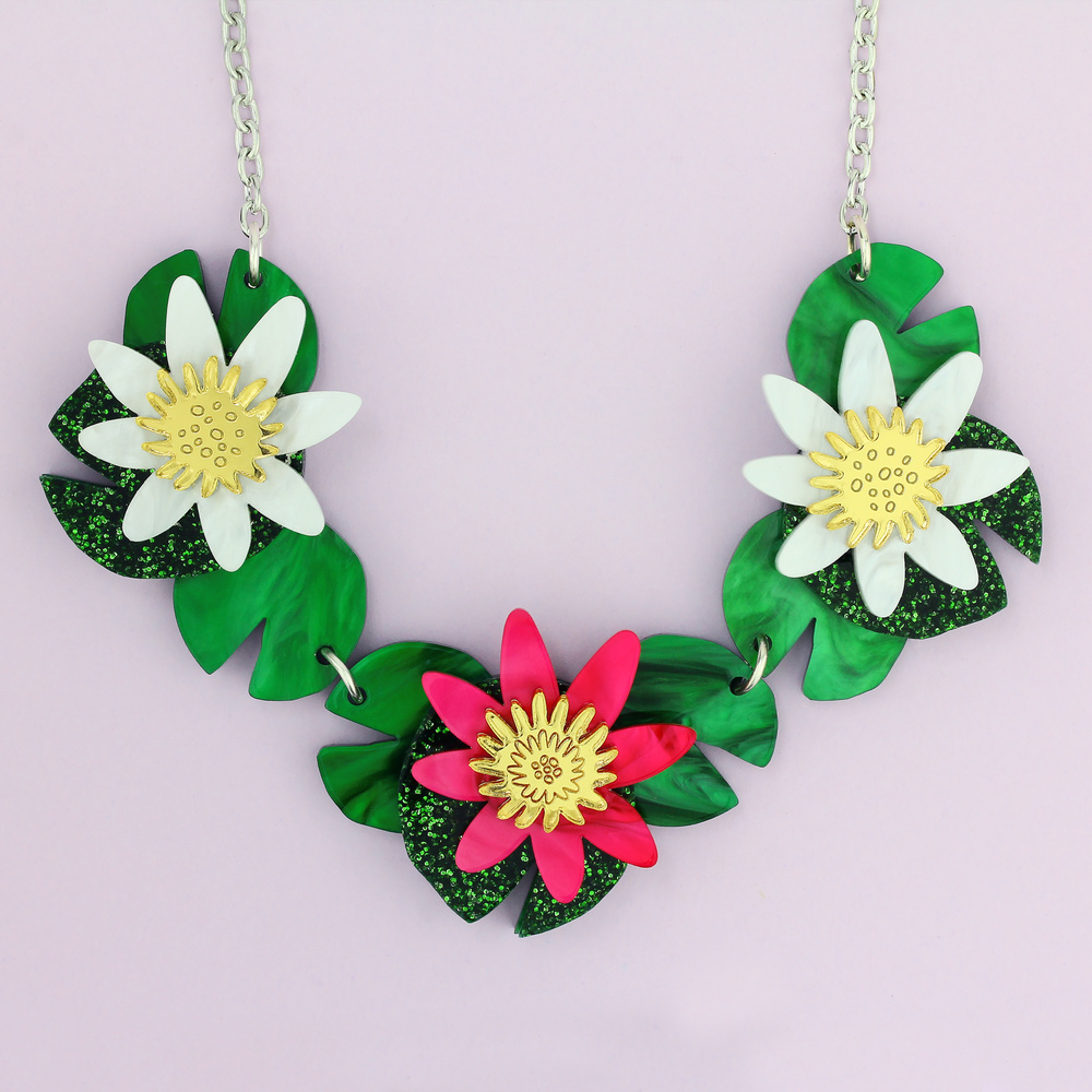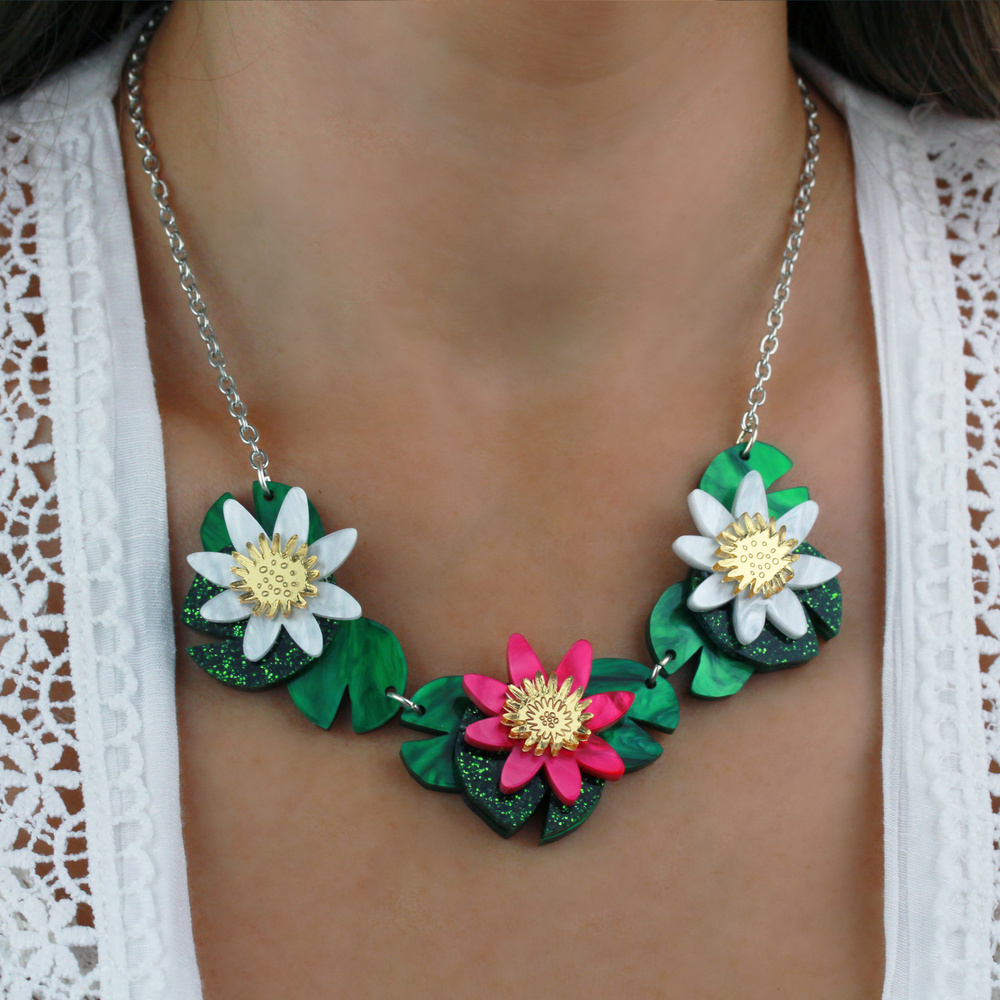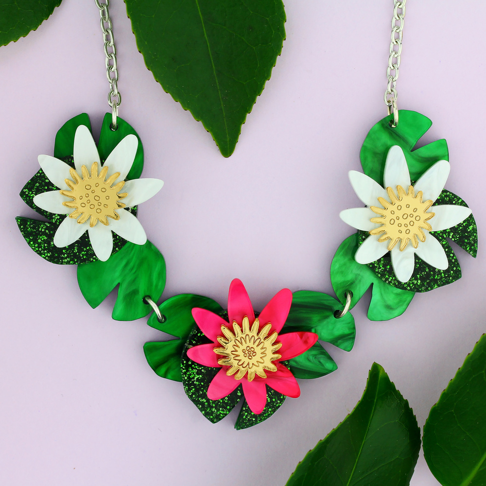 Sometimes, simplicity is key, but that doesn't have to mean boring. Our Waterlily trio necklace uses an array of eye-catching, luxury marbled acrylics to create an effortlessly timeless necklace that you'll be wearing day after day. We are proud to handmade all of our jewellery in south of England studio.